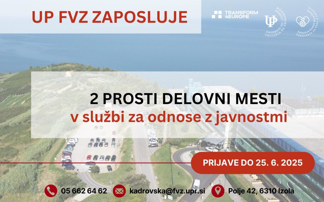 Ponudbe z motivacijskim pismom in z življenjepisom ter dokazili o izpolnjevanju pogojev pošljite na elektronski naslov: kadrovska@fvz.upr.si.