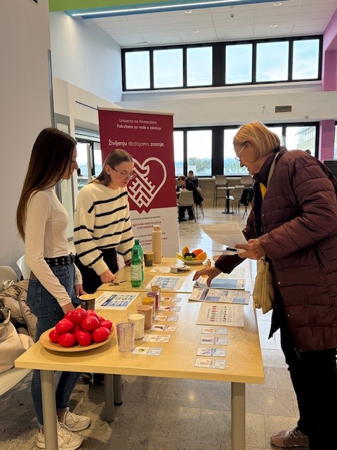 Ob mednarodnem dnevu voda sta študentki dietetike Neža Kos in Nina Levpušček pod mentorstvom doc. dr. Tadeje Jakus v Splošni bolnišnici Izola pripravile promocijsko stojnico ter obiskovalce ozaveščale o pomenu ustrezne hidracije. S pacienti in obiskovalci so delili praktične nasvete o tem, kako prepoznati znake dehidracije s pomočjo barve urina in zakaj je zadosten vnos tekočine nujen za delovanje telesa. Odziv je bil zelo pozitiven.