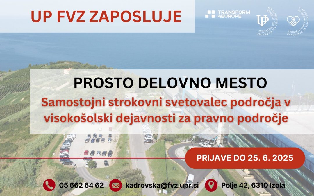Ponudbe z motivacijskim pismom in z življenjepisom ter dokazili o izpolnjevanju pogojev pošljite na elektronski naslov: kadrovska@fvz.upr.si.