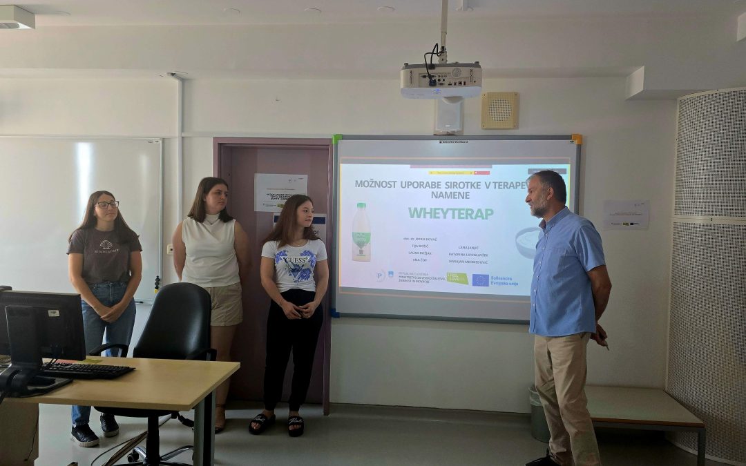 V četrtek, 26. 6. 2025 je na UP FVZ potekala zaključna predstavitev PUŠ projekta »Možnosti uporabe odpadne sirotke v terapevtske namene«. V okviru projekta so člani projektne skupine proučevali možnost uporabe sirotke, ki nastane pri proizvodnji sira kot stranski proizvod in jo manjši proizvajalci povečini zavržejo. Ugotovljene so bile razpoložljive količine sirotke in dosedanji načini uporabe. Pripravljena je bila simulacija možnosti uporabe sirotke za termalne namene in rentabilnosti postavitve manjše kopeli. Iz sirotke in liofilizata sirotke so bile izdelane 4 različice krem za dermatološko uporabo. Izdelani so bili prototipi obližev. Projekt je potekal v sodelovanju s Posoškim zdravstvenim centrom d.o.o.