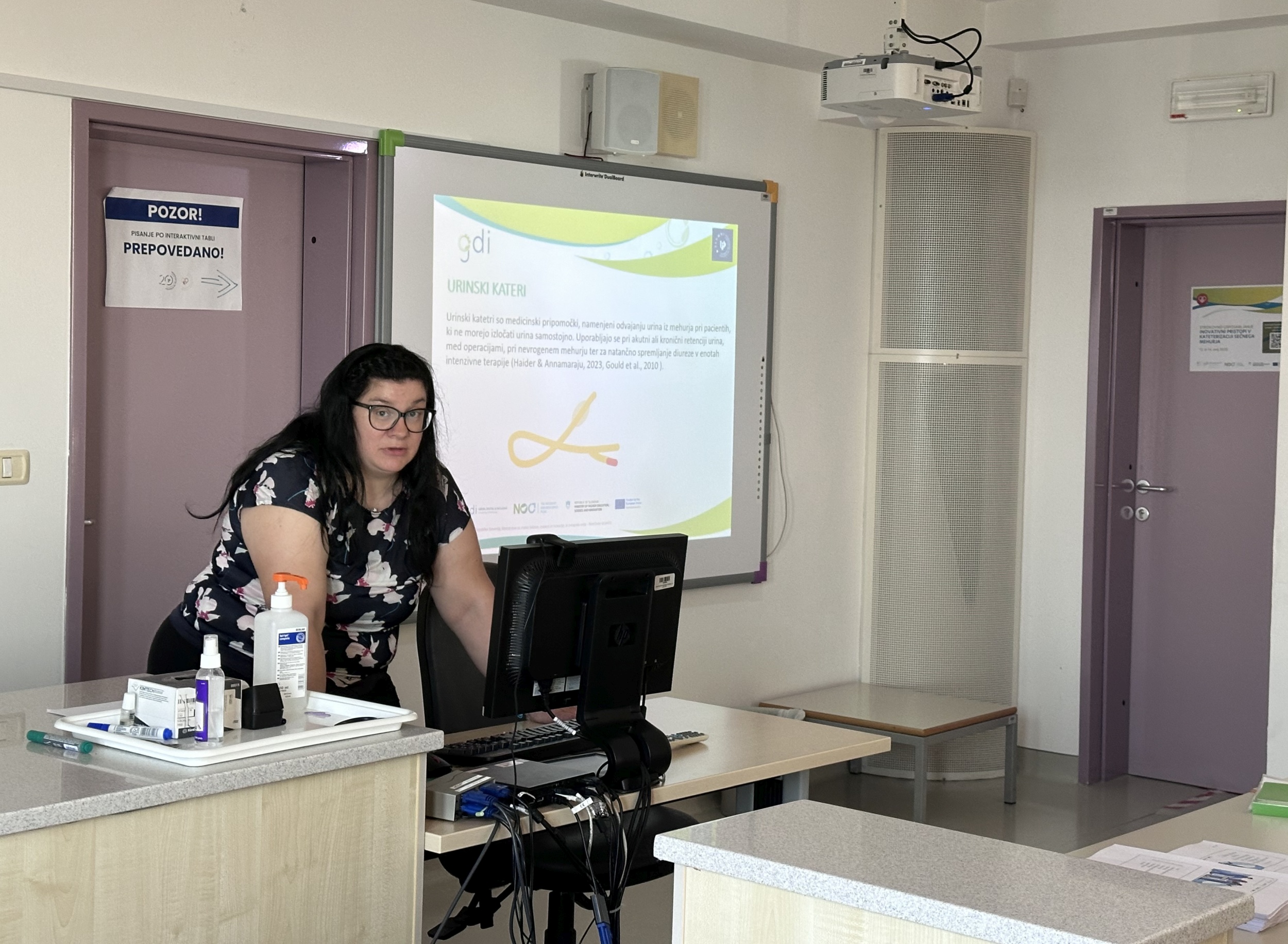 Teoretični del usposabljanja je zajel ključne vsebine, kot so indikacije in kontraindikacije za kateterizacijo, izbor ustreznih pripomočkov, pravilna izvedba postopka, preprečevanje zapletov ter pomen kakovostnega dokumentiranja in celostne obravnave pacientke z urinskim katetrom. Posebna pozornost je bila namenjena mednarodnim smernicam in dokazih podprti praksi na področju zdravstvene nege.