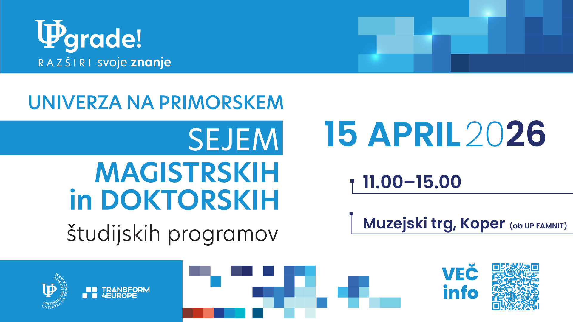 Vabljeni na UPgrade – sejem magistrskih in doktorskih študijskih programov Univerze na Primorskem.